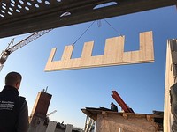 Im Herzen Berlins lassen unsere Jungs gerade ein neues Dachgeschoss entstehen. Die Wände bestehen aus Brettsperrholz und spielen somit den Vorteil, der leichten Bauweise, gegenüber Mauerwerk aus. So kann auf einem Bestandsgebäude ein weiteres, komplett neues Stockwerk realisiert werden.