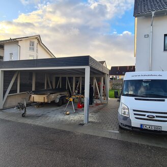 Wir liefern die kompletten Bausätze für individuell geplante Carports, die Sie als Bauherr selbst montieren. Dafür nehmen wir vor Ort das Aufmaß und beziehen die örtlichen Gegebenheiten in die Planung ein. Sie bestimmen die Form, Farbe und Details Ihres Carports. Wir beraten Sie in Bezug auf die Umsetzung und liefern die Bauteile zu Ihnen nach Hause.
